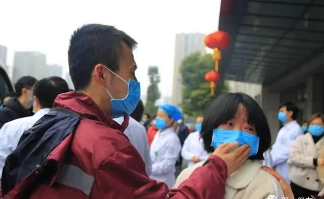在出征仪式上,队员王春兰的两个孩子一直围了她叫着“妈妈、妈妈!”一声声呼唤让人不舍。“妈妈,你是医生,你要守护病人,要加油!”孩子的话让她泪目,还不懂这次分别得意义,但是孩子们一直举着拳头,给王春兰鼓劲。“爸爸,照顾好孩子,等我回来。”一个紧紧的拥抱,一个个脸贴脸的亲吻,王春兰别过头,把孩子推到父母身边,义无反馈踏上了出行的客车。王春兰的两个女儿一个5岁半大,一个3岁半大,她的丈夫是区疾控中心的工作人员,从年三十开始就奔波在物资调配的岗位上,没能来送行,但这对挺身而出的战役夫妻的心一直连在一起。