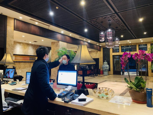 为保障游客安全,璧山天赐华汤酒店在复工后采取了系列措施进行仿疫。天赐集团副总裁李应锋告诉记者,安全是他们复工后最重要的一点,酒店公共区域每天会进行全面消毒,酒店前台及各个营业点均设置了体温监测点、放置专业消毒洗手液,客人入住时均需测量体温、洗手消毒,酒店也会每日定时测量住店客人体温;同时,他们还免费为入住客人提供一次性医用口罩。