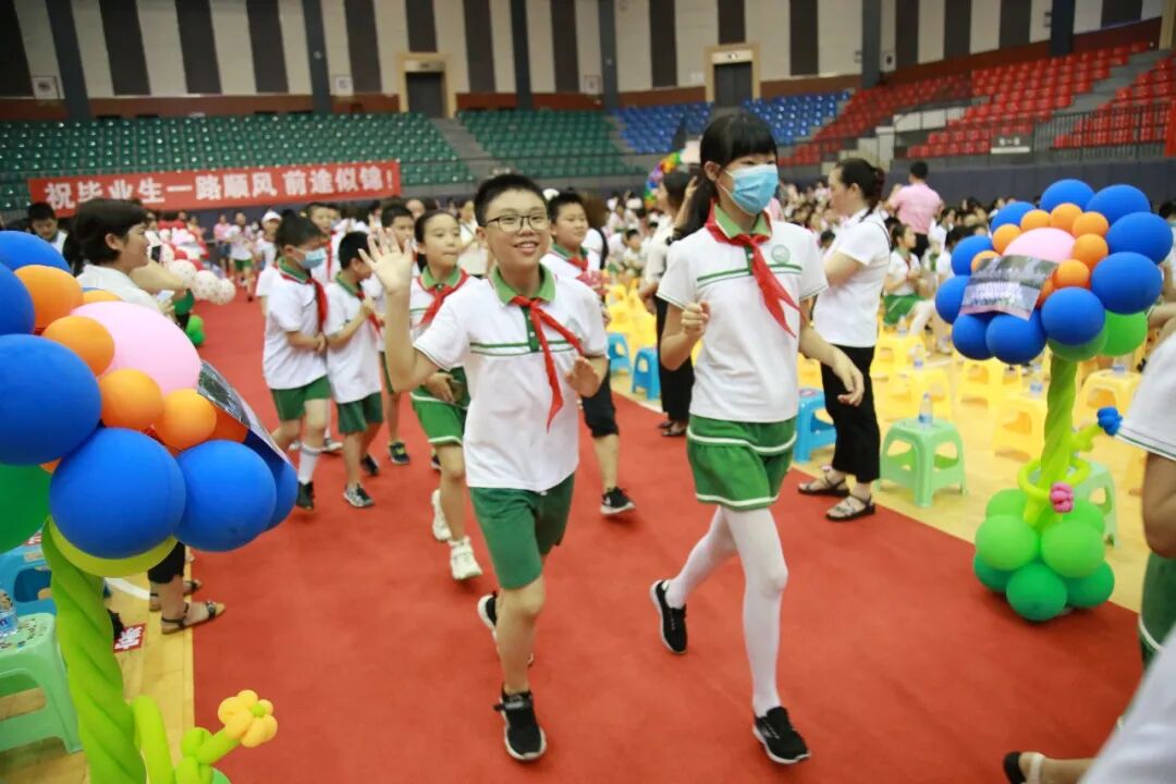 2020,虽然困难重重,但“流光童年 踏梦而行——璧山实验小学 2020届学生毕业典礼”如约而至,典礼分为班级联欢和集中典礼两部分。7月4日下午2点30分,迎着点点夏雨,实验小学六年级全体师生及72名家长代表,伴着悠扬的乐曲走进璧山中学体育馆,用现场直播的方式,线上线下共同感受这场童年纪念仪式。