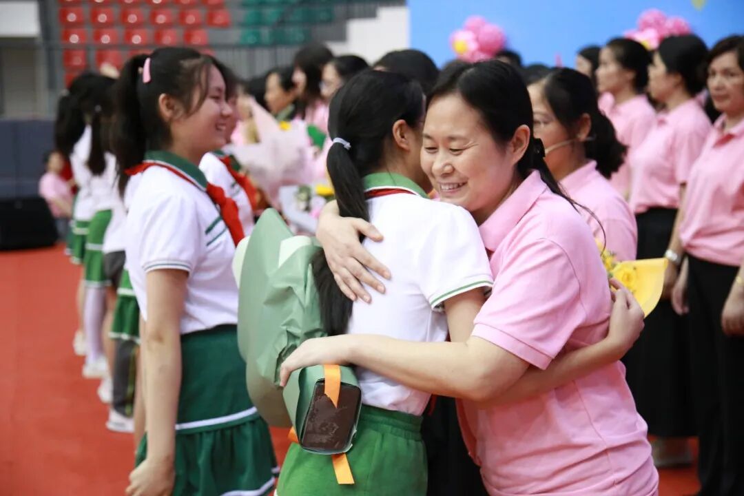 走下讲台登上舞台的老师们,依然是最靓丽的风景。一声声“亲爱的孩子”是不舍,一句句温暖的话语是祝福,一个个热情的拥抱是真诚,都在实小娃深深的鞠躬里,全在那声声“老师您辛苦了”的感谢里。